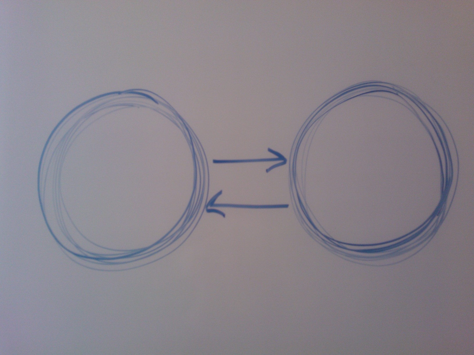Imagine a piece of paper with two circles for the individuals and a line connecting them.  How do we share responsibility for the relationship represented by that line? How much of that relationship am I responsible for, and how much are you responsible for? Most people I’ve asked have suggested that each party is responsible for 50% of the relationship. The person represented by the circle on the left is thus responsible for the left half of the line up to its midpoint, while the person represented by the circle on the right is responsible for the right half of the line. The goal, it seems, is to meet halfway.